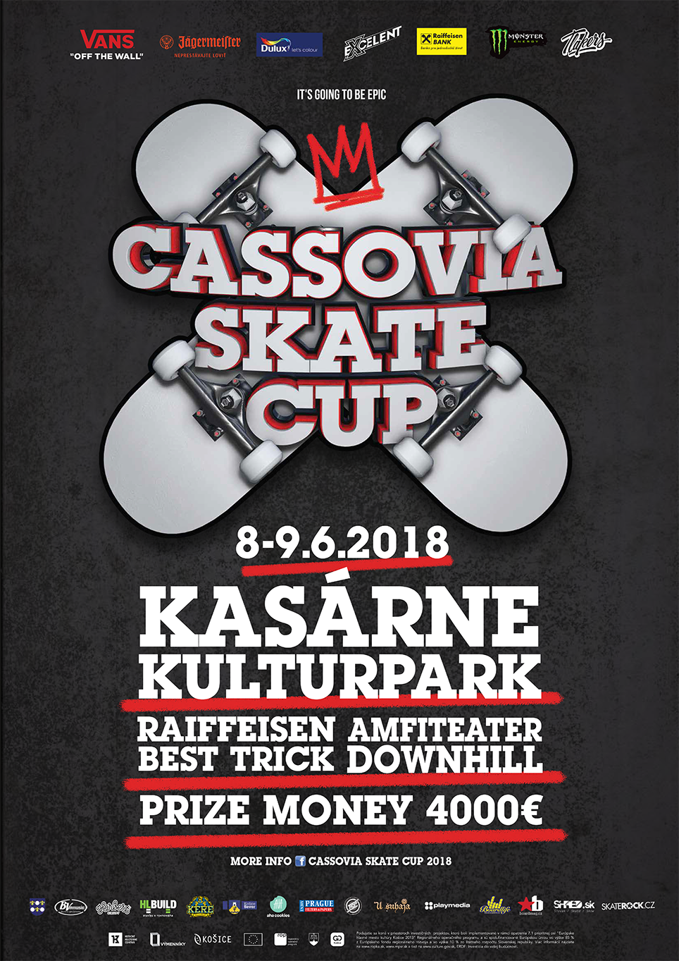 Viac informácii o súťaži a programe nájdete na Facebooku v udalosti alebo oficiálnom webe Cassovia skate cup 2018.