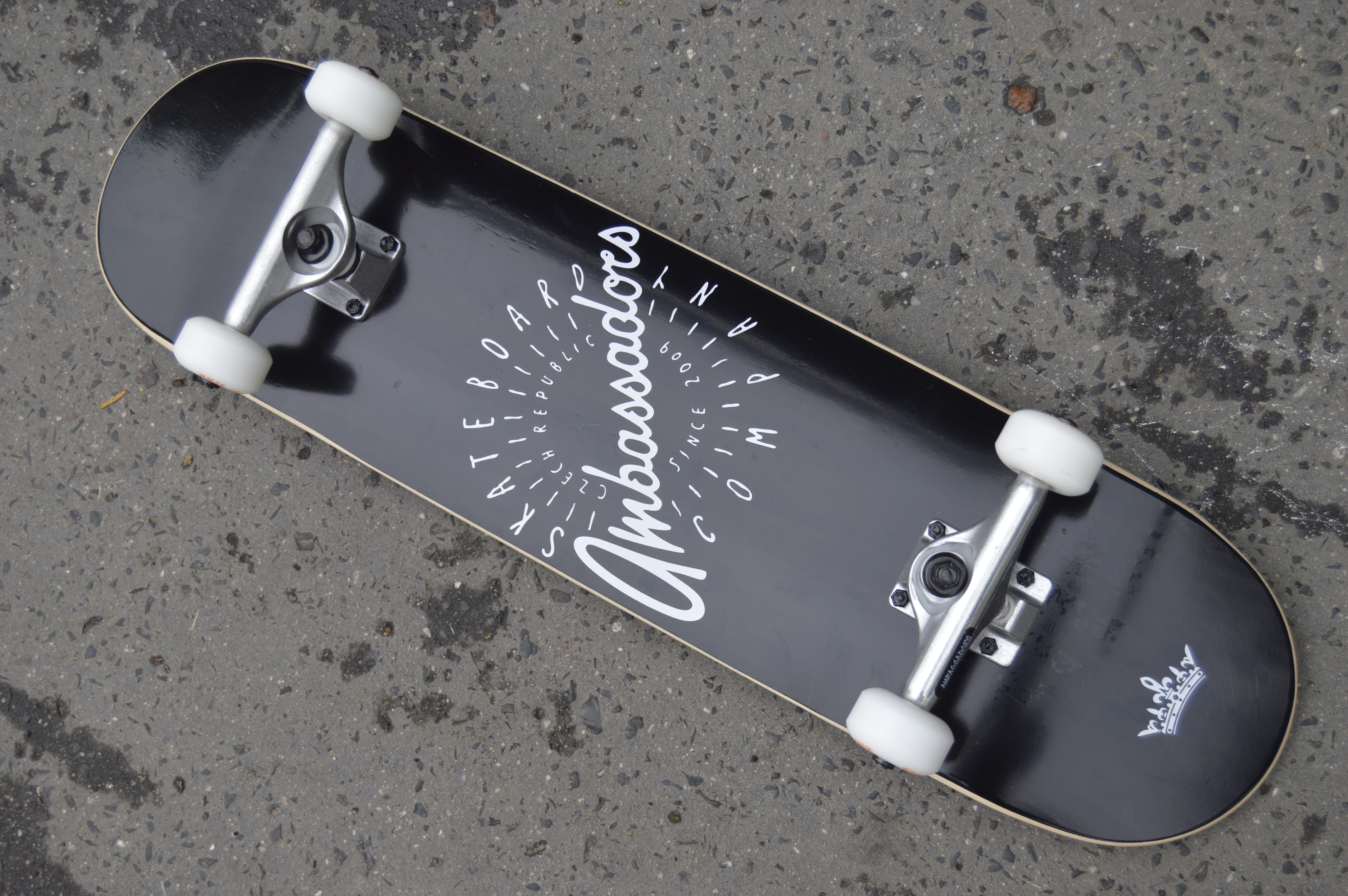 Skate komplet od Ambassadors Spin je postavený profi komplet pro začínající a pokročilé jezdce. Šíře desky 7,875 palců se ideální hodí pro jezdce okolo 10 let a výše. Deska Ambassadors 7,875 medium concave, grip Jesup, Trucky Ambassadors, kolečka Minilogo 53mm, ložiska Abec 7.