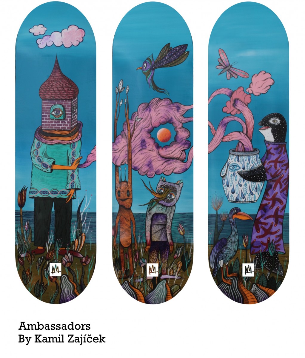 Popis: Smyšlené postavy provádějí rituály inspirované změnami ročních období. Designy ve stylu pop-surrealismu, ve kterém se meze nekladou a fantazie má nekonečný prostor v oblíbených barvách autora.