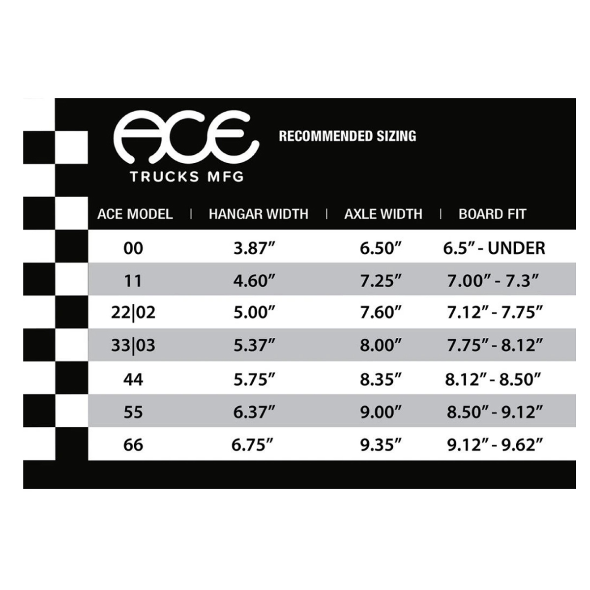 Ace je zavedená značka ze San Francisca, která vyrábí trucky plus pár druhů doplňků a oblečení. V jejím týmu jsou například Kevin Rodrigues, Ronnie Sandoval, Raven Tershy, Alex Olson, Jacopo Carozzi, Didrik Galasso a spousta dalších.