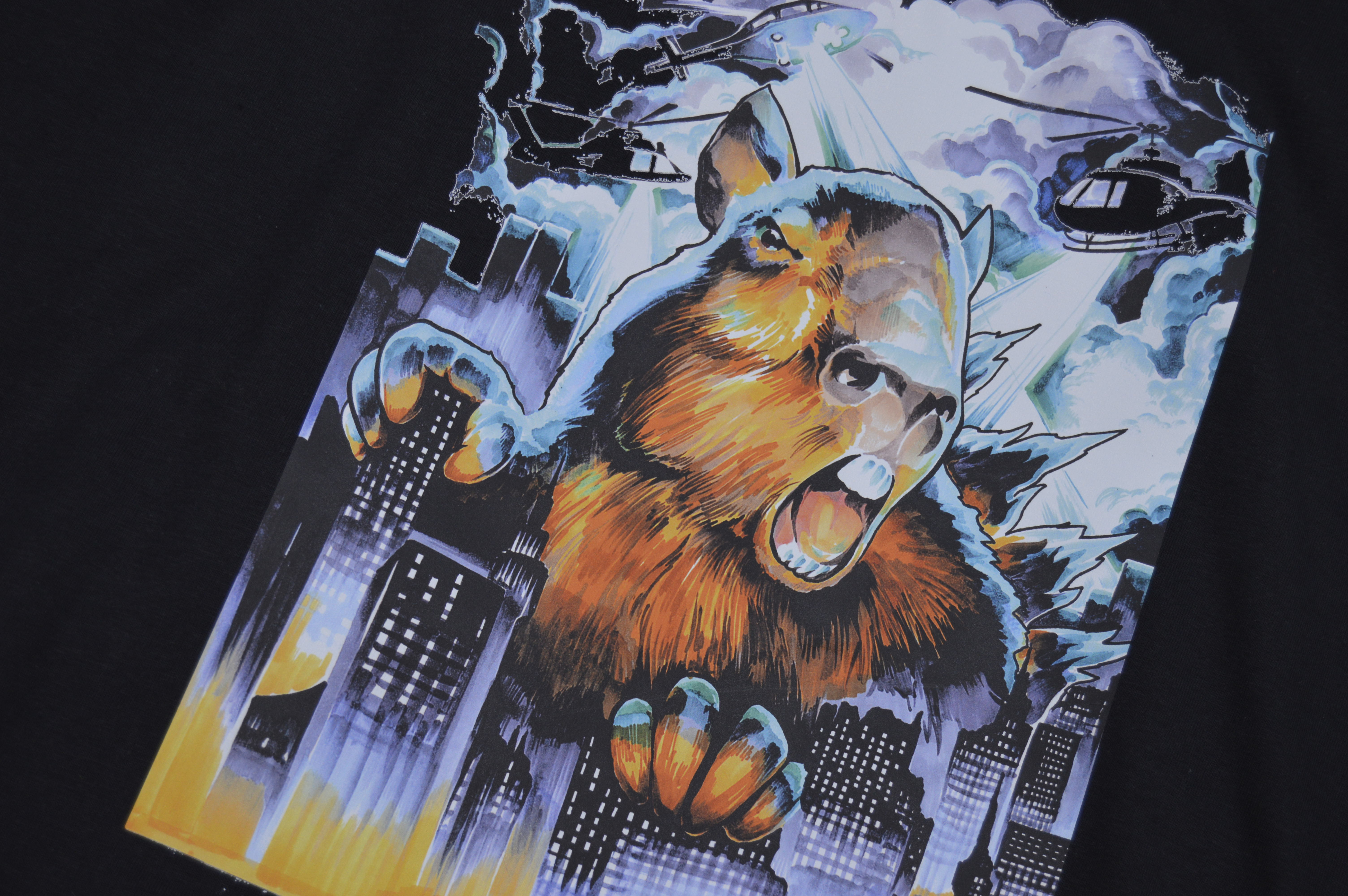 Popis: Streetová značka Kapybara wear představuje novinku v podobě Kapybaří Godzily. Dvorní Kapybaří malířka Tereza Kowolowská z tatto studia Blackrooster stvořila Kapybaří Godzilu. Tu prostě musíte mít! (složení trička 180g 100% bavlna)