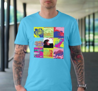 Nové tričko od Kapybary – Pop Art v tyrkysové barvě s partou Kapybar ve Warhol...