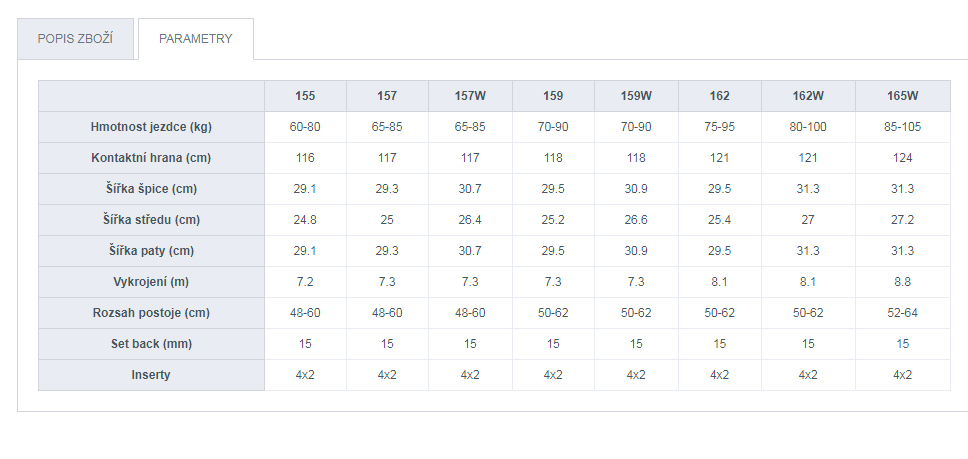 Micro Inserts - inzerty jsou umístěny v pozici 4 × 2 cm. Oproti běžným inzertům (4 × 4 cm) umožňují přesnější nastavení stance.