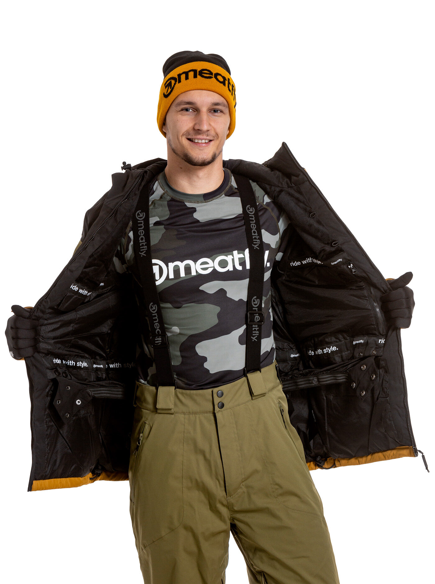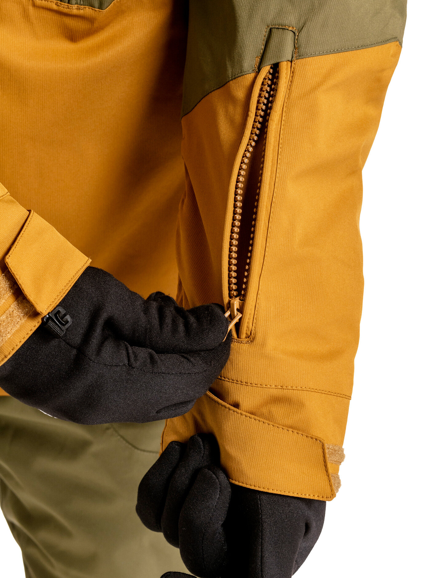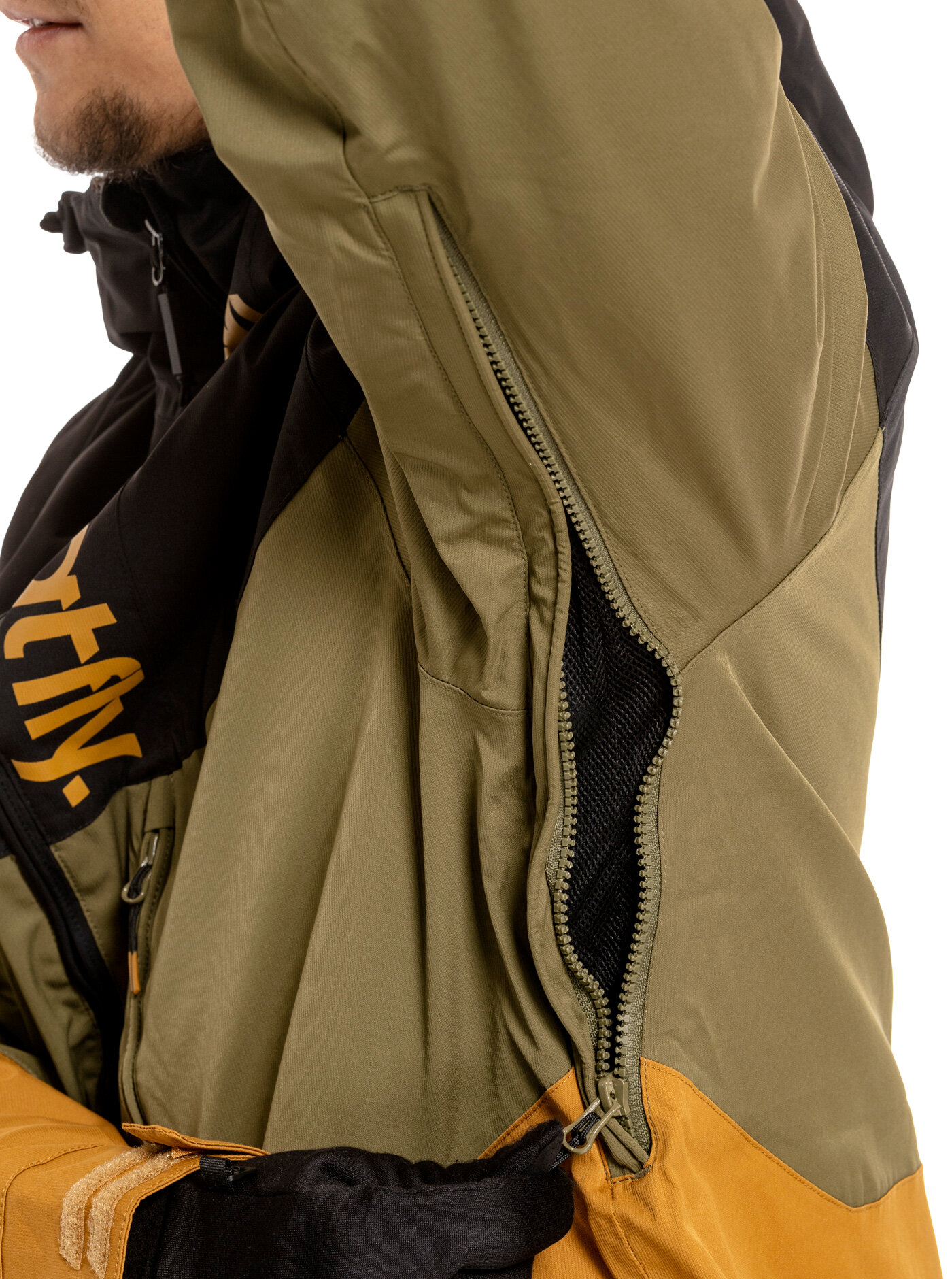 rukávy jsou zakončeny elastickým návlekem s otvorem pro palec a nastavitelnou manžetou na suchý zip