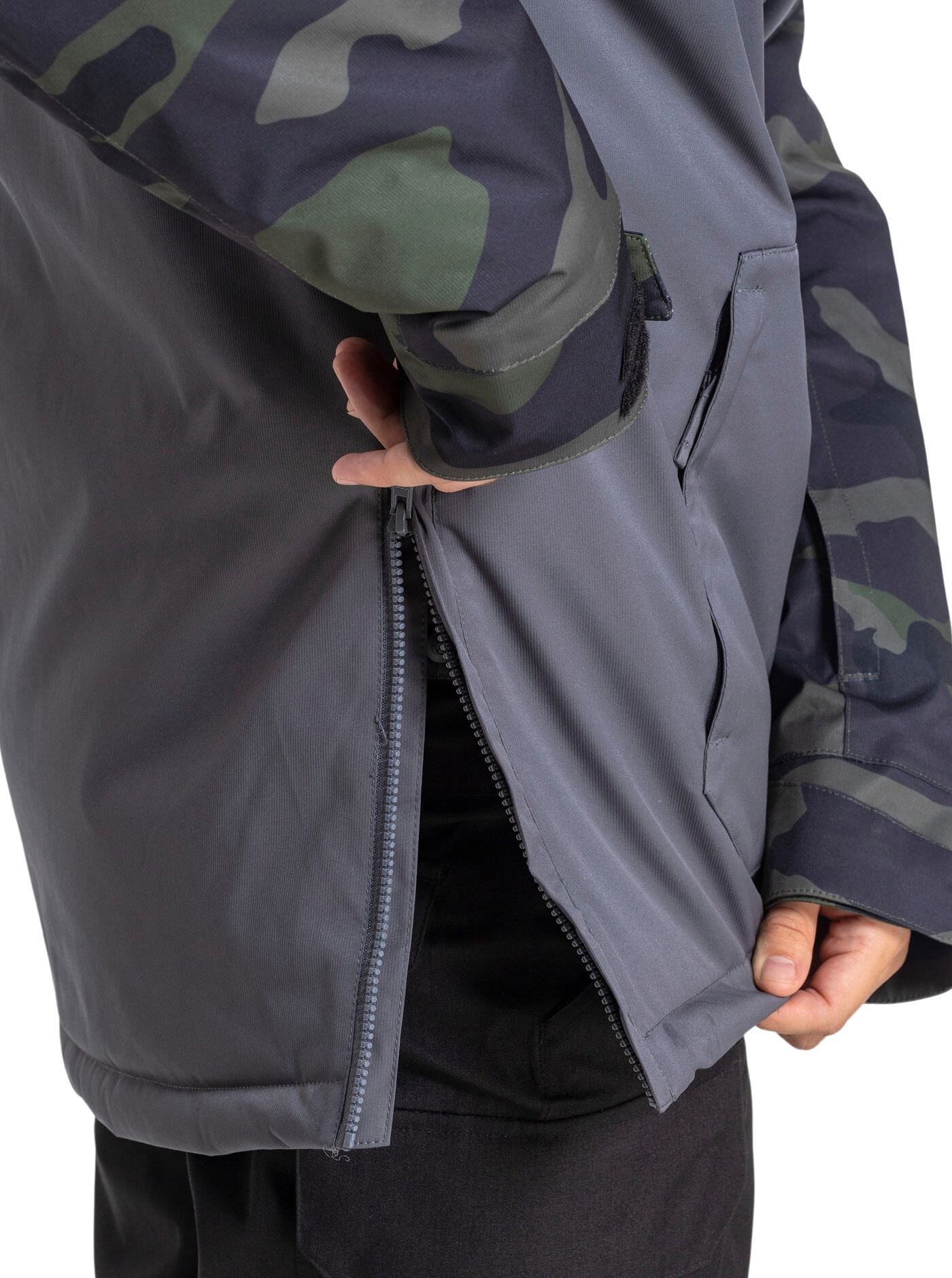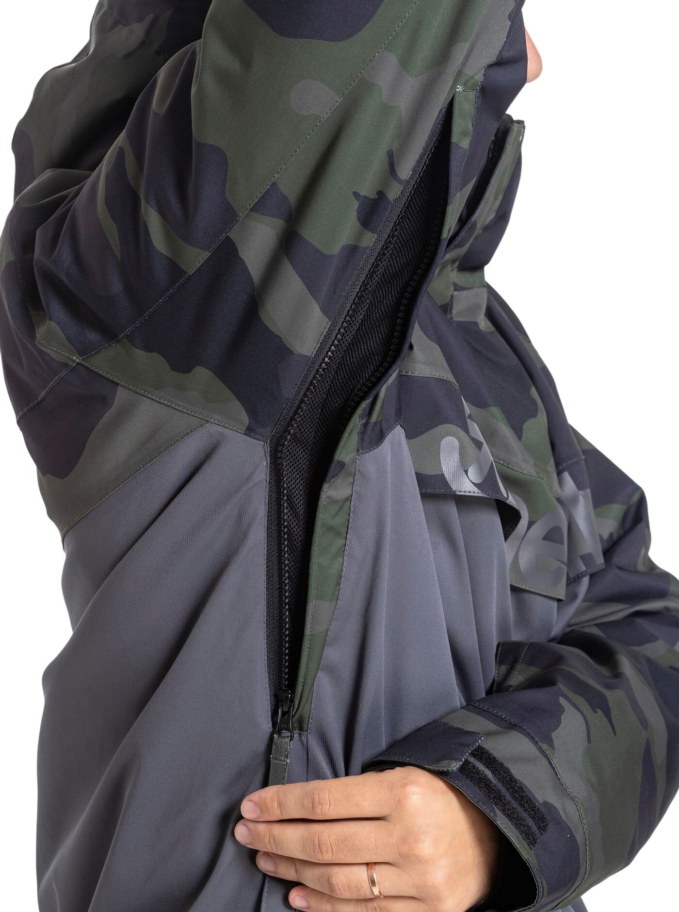 rukávy zakončeny elastickým návlekem s otvorem pro palec a nastavitelnou manžetou na suchý zip